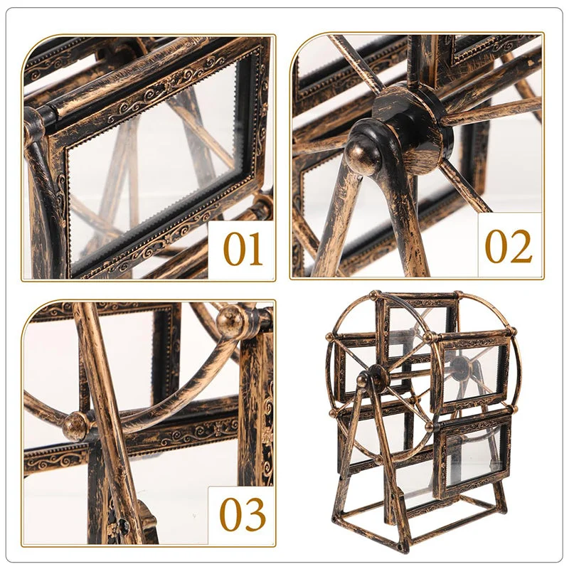 Creative picture frame: Our picture frame features a retro ferris wheel. Ferris wheel photo frame contains six small photo frames that can hold up to twelve 5" x 3.5" photos. 360-degree rotation makes it a beautiful image display.