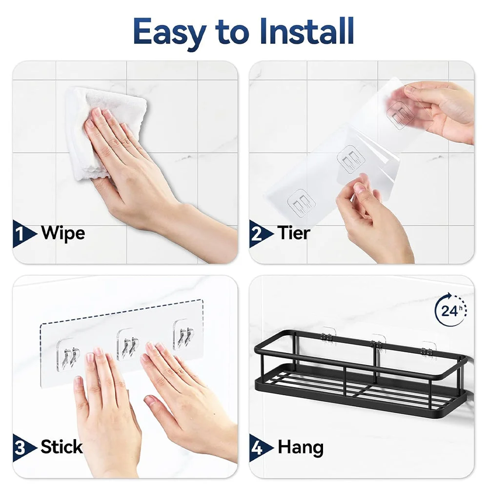 Strength: Uses lab-tested double-layer adhesive pads that securely support up to 40 lb of bath essentials with stable, sag-free performance.