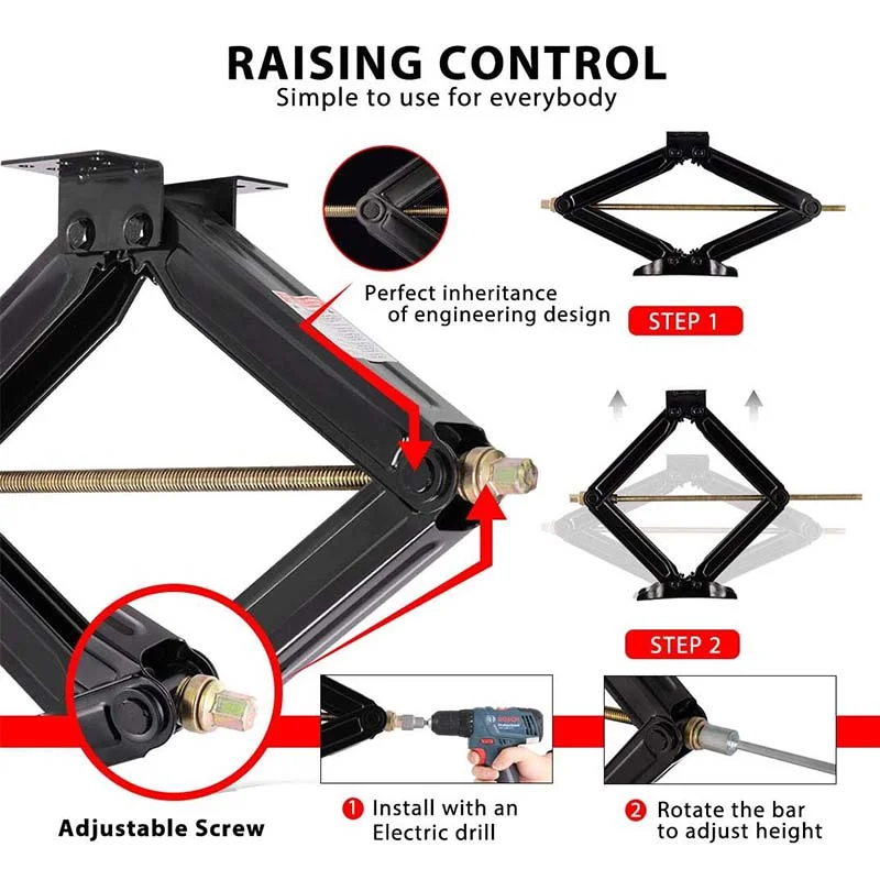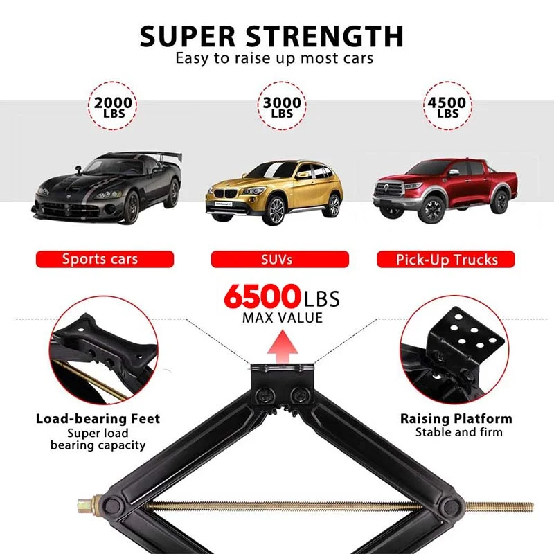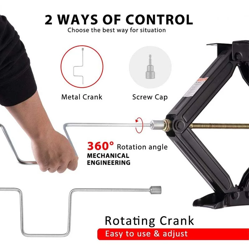 Complete tool set for convenience: The alloy steel set includes 2 leveling scissor jacks and 1 crank handle, while the high-carbon steel set includes a lug wrench, scissor jack, and ratchet, ensuring you have all the necessary tools for vehicle maintenance.