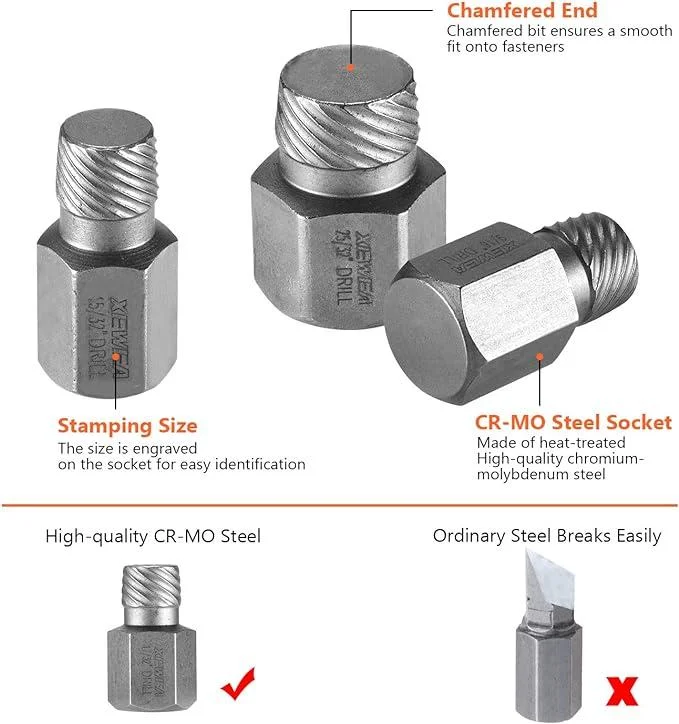 HEAVY-DUTY DAMAGED-SCREW EXTRACTOR SET:Tackle frozen, broken, stripped, and damaged screwsand bolts with this set of screw extractors. Theseextractors will help you remove even the toughest brokenfasteners with speed and efficiency.