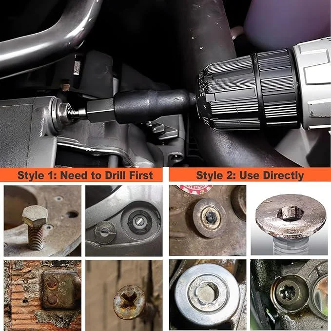 Very nice set which allows for multiple types of tools tobe used to extract bolts.