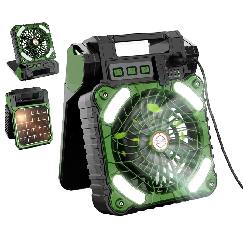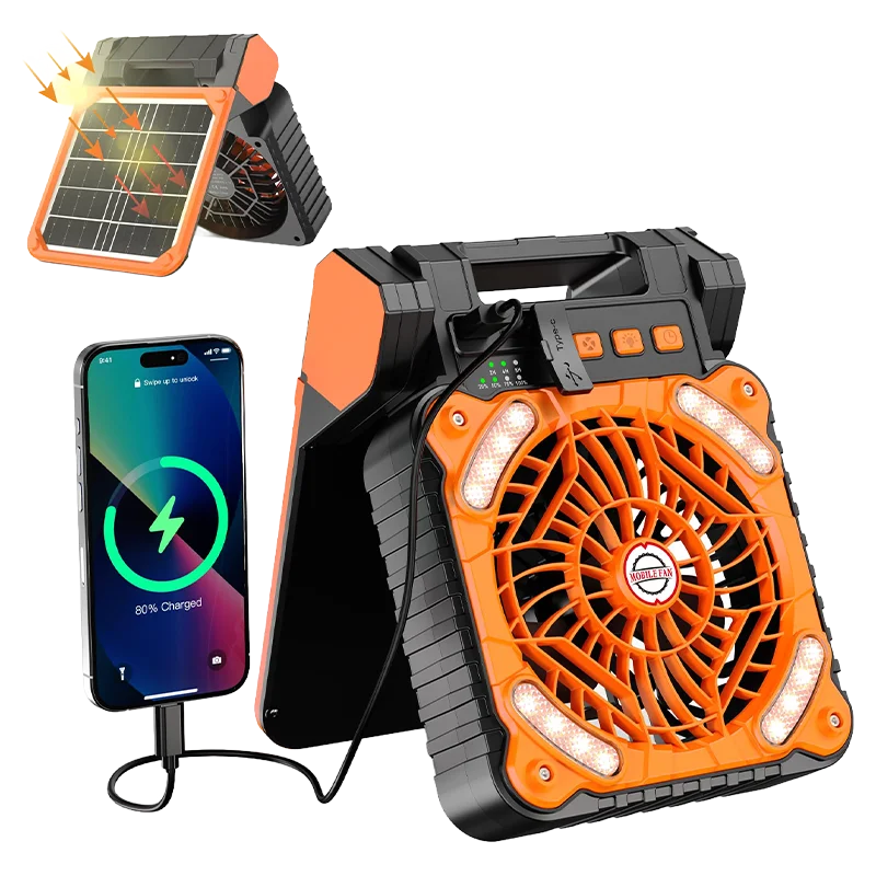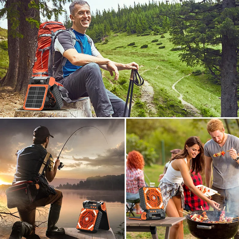 Reliable cooling anywhere, anytime: Stay cool even when you're off the grid. With both solar panel support and a built-in rechargeable battery, this fan works day or night—even during power outages or remote adventures. Solar charging allows continuous use while charging under sunlight.