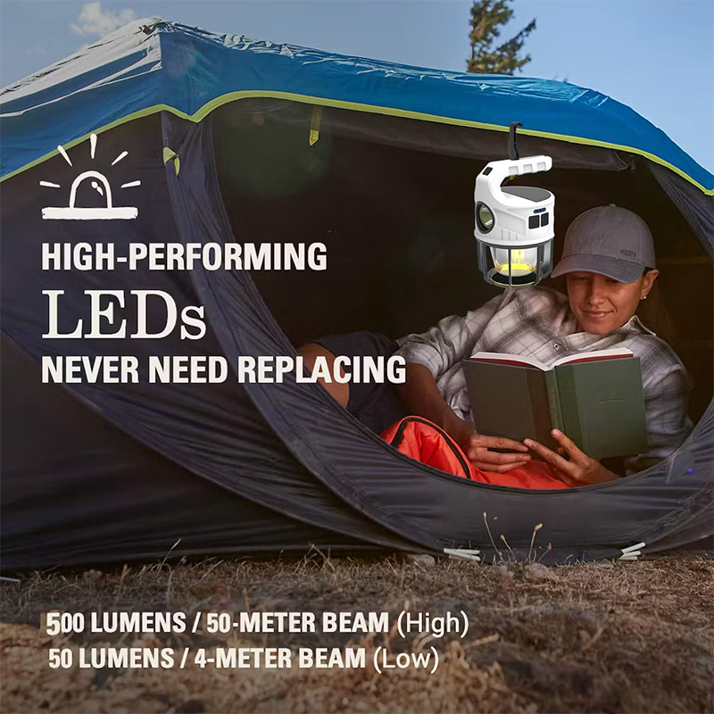 Dual light source flashlight lanterns & stepless dimming | 500LM: Features a high-brightness spotlight and floodlight dual-mode design, allowing you to switch freely between focused and wide-area lighting. Delivers up to 500 lumens (500LM) brightness with stepless dimming for precise brightness control and energy efficiency.