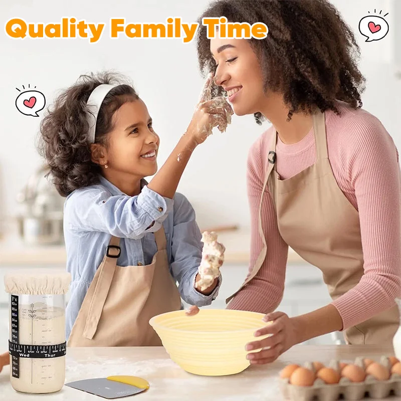 34oz sourdough starter jar: The 34oz wide-mouth glass jar offers enough capacity for multiple batches, making feeding and stirring simple while helping you enjoy homemade sourdough with great texture and flavor.