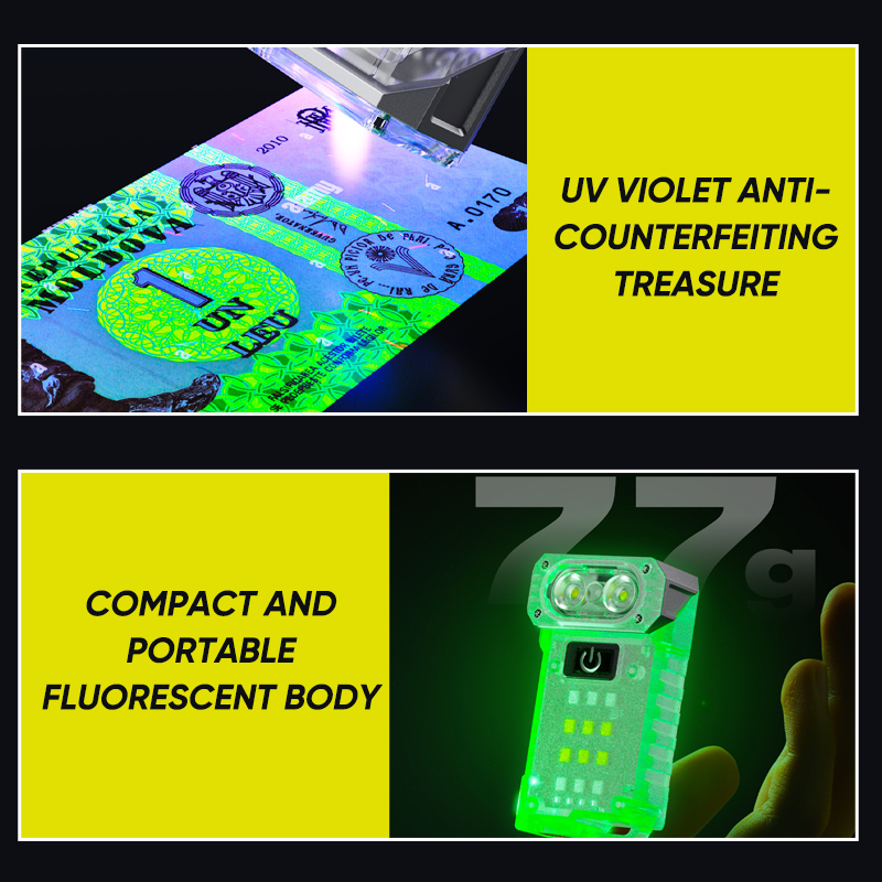 MULTIPLE MODES & MEMORY FUNCTION: The keychain flashlight has 10 multi-function modes, including commonly used gear adjustment, SOS, strobe, red light and blue light modes, etc.