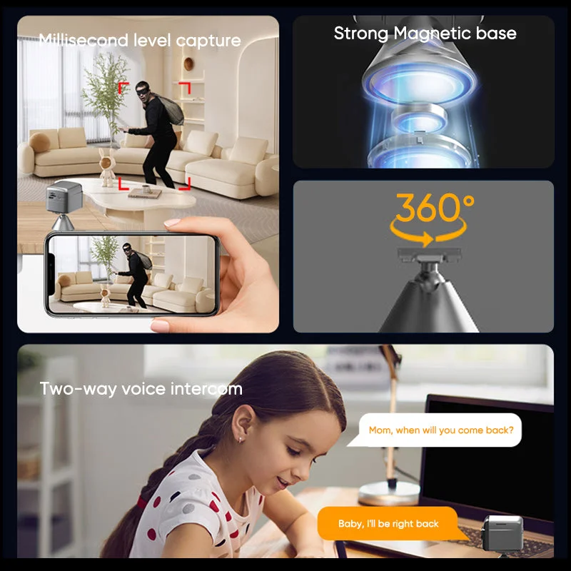 Powerful magnetic base: The upgraded detachable magnetic base allows you to place the camera anywhere you need. No drilling, no wiring—just attach it securely to any metal surface.