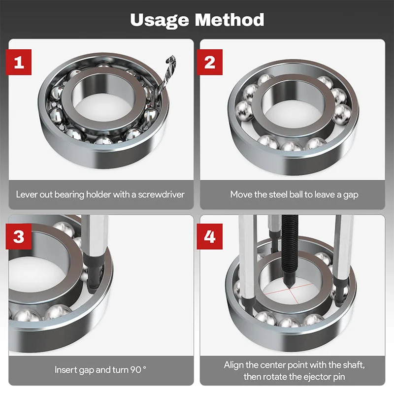 Easy Disassembly: This is a bore bearing puller tool. Choose a suitable collet and place it between the inner and outer ring of the bearing. Use a wrench to twist the top rod screw of the inner hole bearing puller, and the bearing can be easily removed without damaging the repair parts. It is an ideal tool for the maintenance industry.