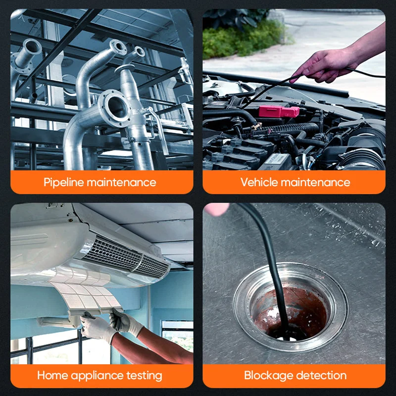 Versatile tool: Our 360° rotating endoscope is a versatile tool designed for a wide range of applications, including pipeline maintenance, home appliance testing, vehicle maintenance, and blockage detection. With its precise control and high-definition imaging, it ensures efficient, accurate inspections in hard-to-reach areas. With its 360° rotation, high-definition imaging, and easy-to-control design, this endoscope is the perfect solution for professionals in maintenance, repair, and diagnostic industries.