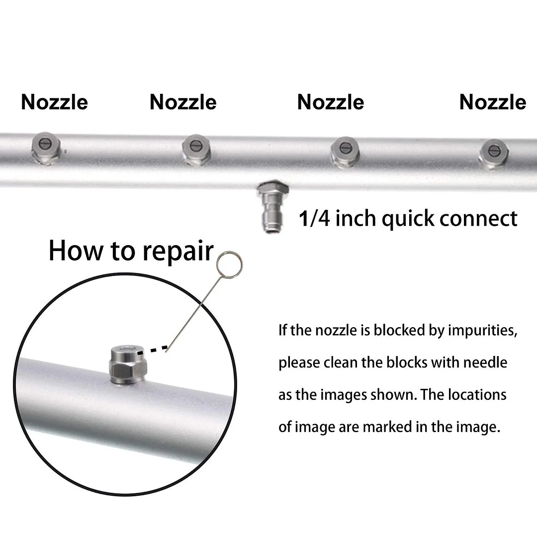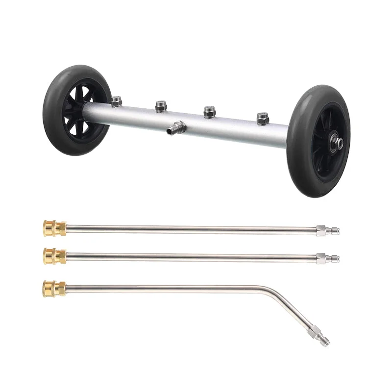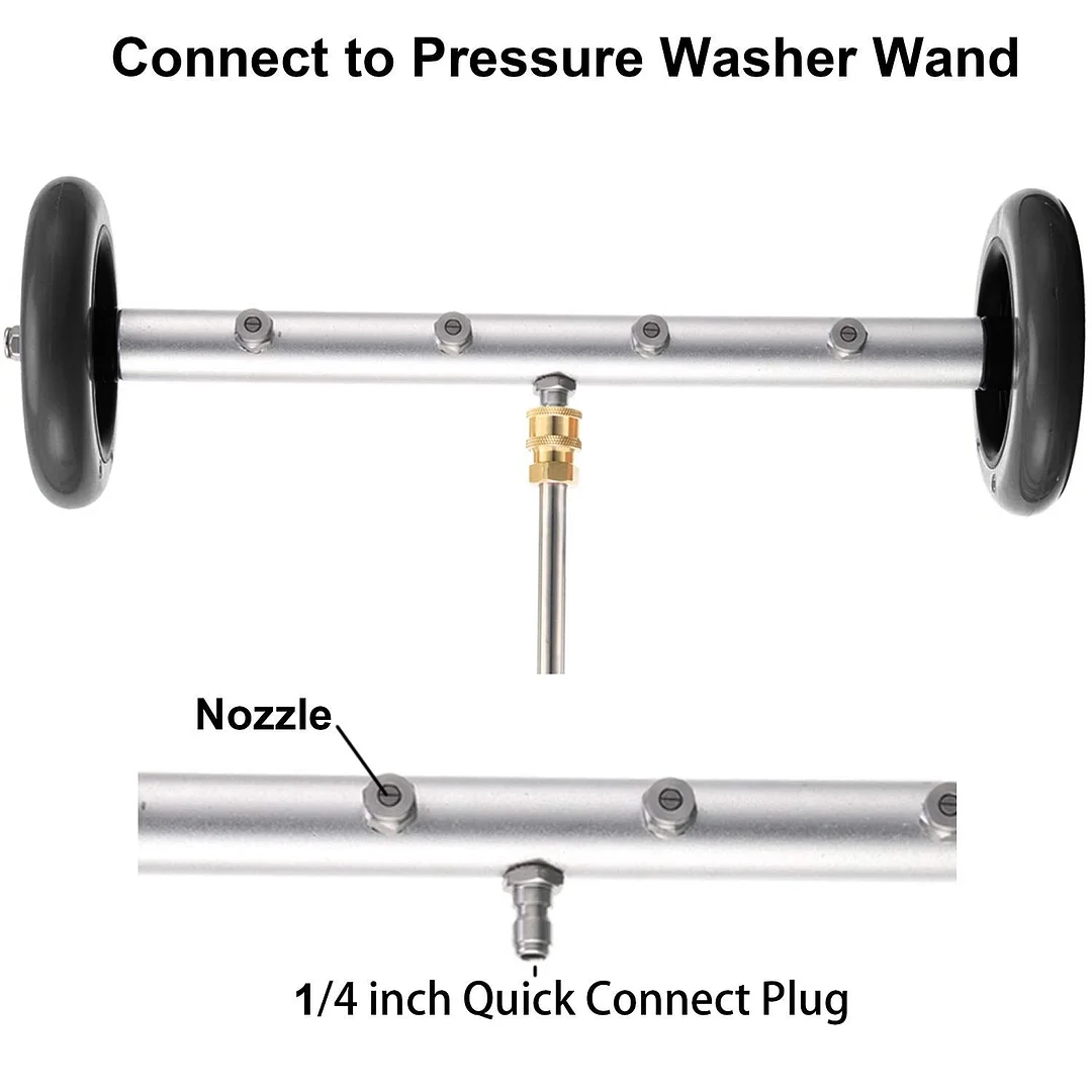 Upgrade Feature: Their size is larger than the same type of undercarriage cleaner. The undercarriage washer has 4 spray nozzles and 2 casters, and can be used for both hot and cold water power washers.
