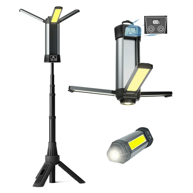 Three Rotatable Lamp Panels: The LED camping light features three rotatable lamp panels with adjustability of vertically 180°rotation and horizontally 270° rotation! Precisely adjust the lighting angle in multiple directions to light up any place where lighting is needed or illuminate 3 different directions at the same time! Say goodbye to dark corners! Whether you're lighting the scene of an accident, working in the garage, or sitting at a campsite, our tripod work light will accommodate your needs.