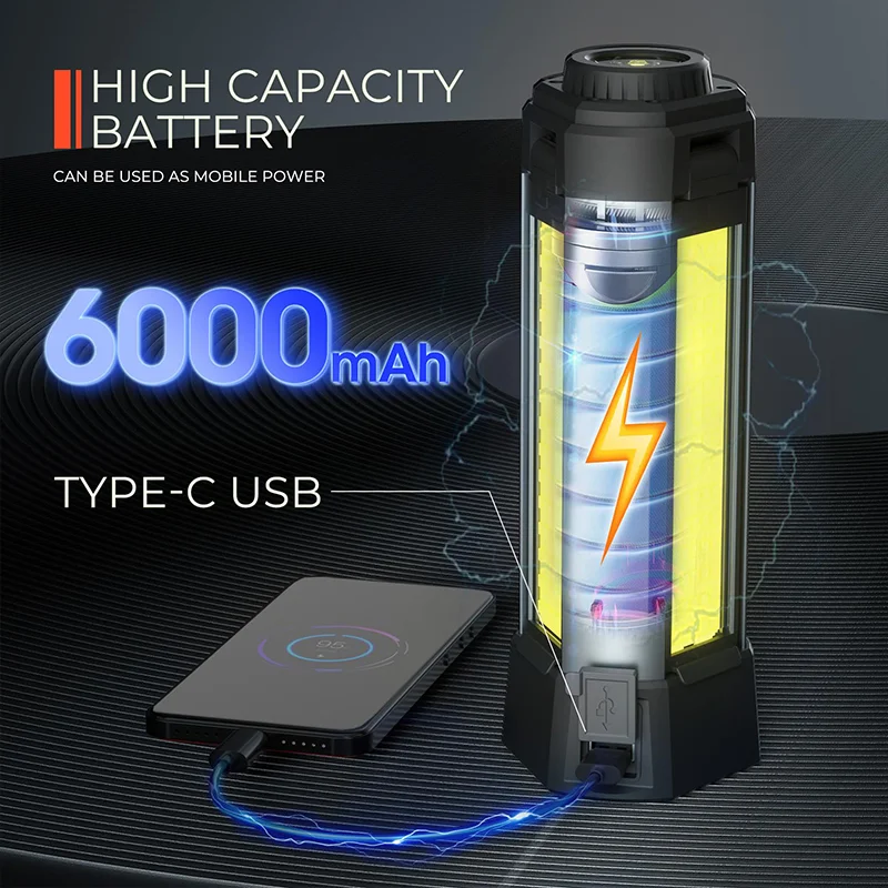 9000mAh High Capacity Battery: Get rid of the shackles of the cord! The LED work light is powered by a 9000mAh high capacity battery which supports longer working hours! It amazingly keep working 12 hours on low brightness, which is sufficient for multiple outdoor activities! Compared to the traditional corded light, our cordless work light provides you indoor flexibility and outdoor portability, satisfy your lighting needs for various working places.