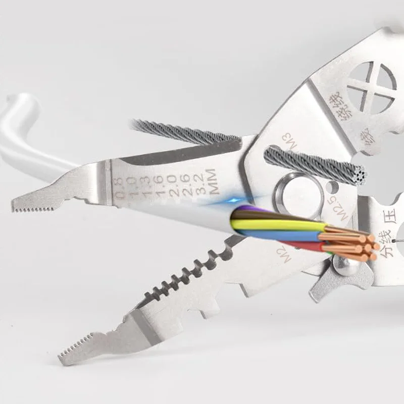 Durable Construction: Crafted from hardened and forged high-quality steel, the wire stripper boasts superior durability and resilience. Its hardened cutting edges ensure sharp and precise cuts, allowing you to effortlessly cut through copper wires, aluminum wires, plastics, and more.
