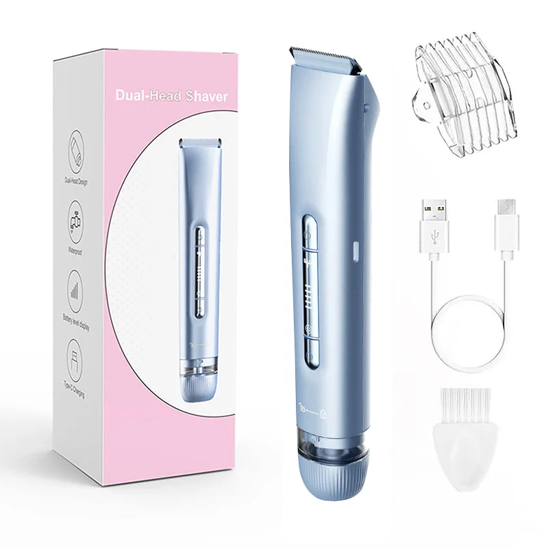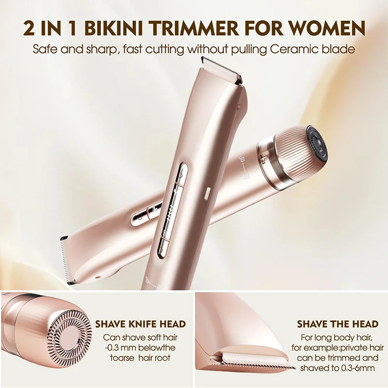 Hypoallergenic electric bikini shaver for sensitive skin: Designed with hypoallergenic stainless steel blades and a protective guard, this women's bikini trimmer glides painlessly over curves. Safe for delicate areas like the face and bikini zone—zero irritation guaranteed.