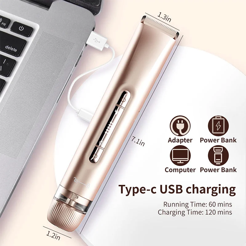 Long-lasting electric lady shaver with quiet operation: USB-rechargeable in 2 hours for up to 60 minutes of cordless use. This electric lady shaver operates whisper-quiet—perfect for late-night sessions or shared spaces. Includes 3mm and 6mm combs for customized styles.