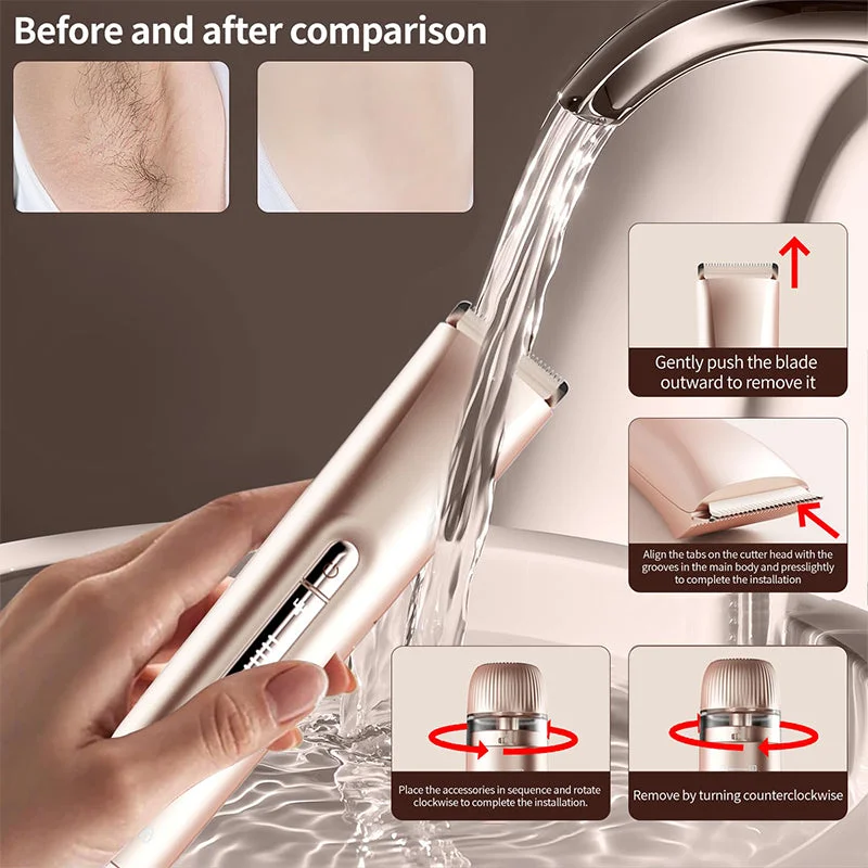 Ipx7 waterproof electric razors for women (wet & dry use): Shower, swim, or travel—this IPX7 waterproof electric razor for women works anywhere. Detachable heads and a cleaning brush ensure quick maintenance. Ideal for poolside touch-ups or as a gym bag essential.