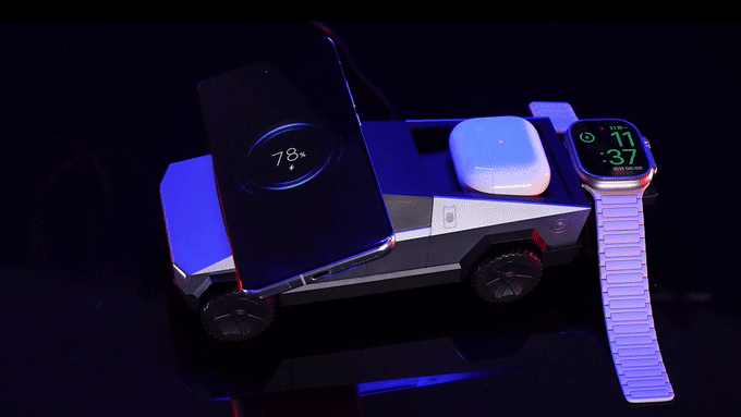 Exquisitely crafted truck model: Inspired by the bold, angular design of the Cybertruck, this charging station is more than a gadget — it’s a mechanical functional sculpture.
