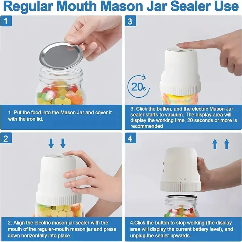 Easy conversion for wide and regular mouths: switch between wide-mouth and regular-mouth sealing adapters effortlessly to suit different jar types.