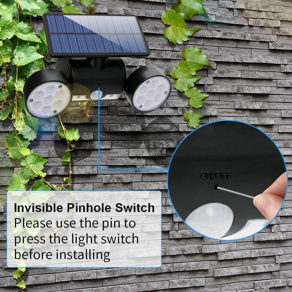 The spotlights of 360° Adjustable Solar Motion Lights on both sides can be adjusted to any angle you need, and the solar panel can also be rotated 360 degrees to face the sun to get maximum solar absorption. The solar security light has a built-in body motion sensor function and low light sensor. It can detect distances up to 26 feet, with a range of 120°. When it is sensed, it shines for 30 seconds and then automatically weakens.