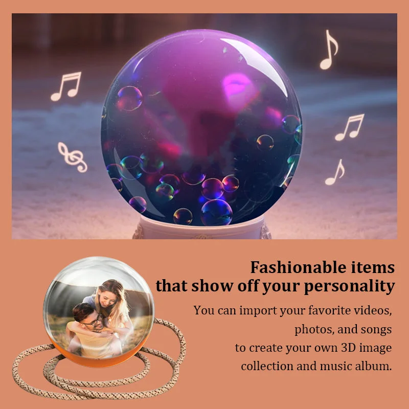 Customizable visual memory experience: This is an innovative 3D crystal sphere with a built-in display that plays your personalized videos, bringing memories vividly to life. Simply connect via USB-C to your computer, upload an MP4 file (recommended 480×480 pixels), and instantly relive your most treasured moments.