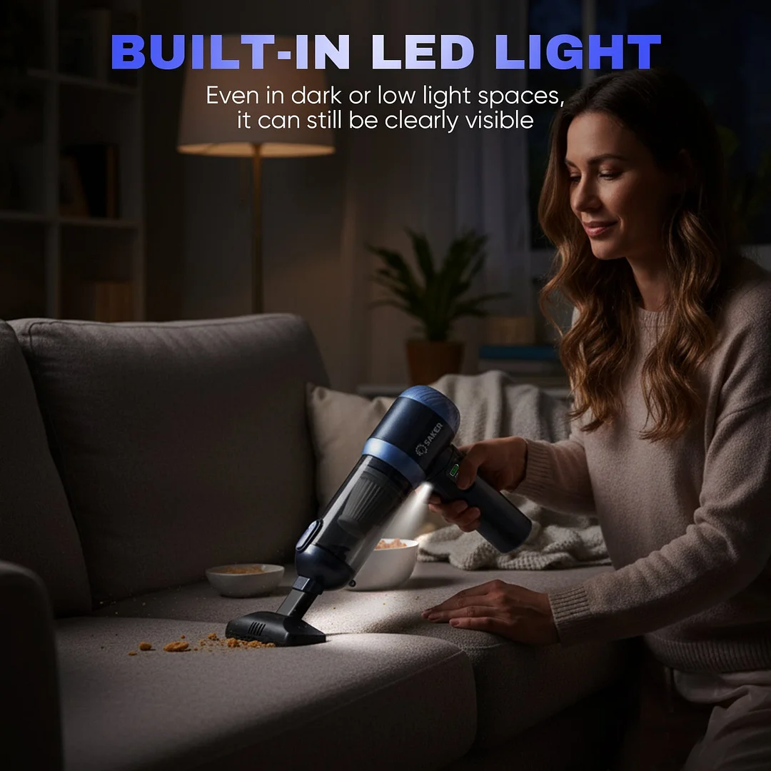 Strong 20000PA suction with upgraded motor: Equipped with a high-performance brushless motor, this Saker Handheld Vacuum delivers an impressive 20,000PA suction power to easily lift dirt, pet hair, and debris from tight spaces and tough surfaces.