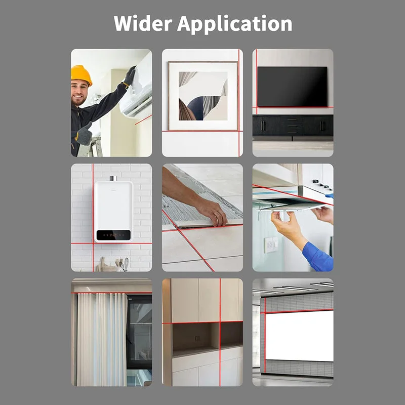 SAKER 4-in 1 laser level adheres directly to walls without the need for a stand. Featuring horizontal and vertical laser lines with a 131ft laser range, SAKER picture hanging laser level delivers swift precise measurements in construction, renovation, DIY projects, etc.