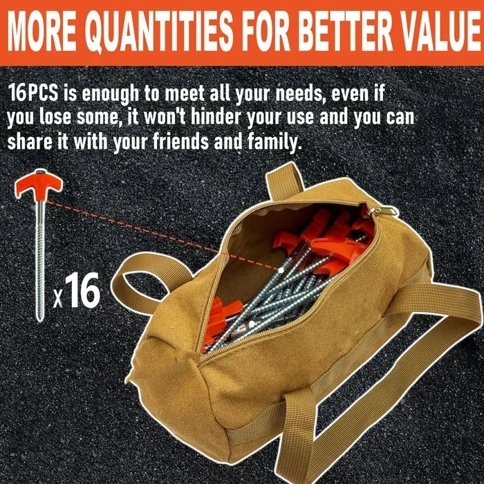 ⛺【 HIGH QUALITY & DURABLE】 Made from high-quality steel with a threaded end for easy insert and superior grip when drilling into various hard surfaces. Whether it's grass, hard soil, gravel, or anything in between, it holds securely.