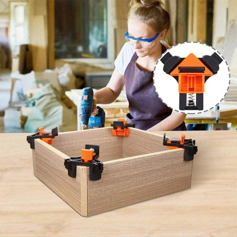 The 90 Degree Corner Clamps will come invery handy when screwing or gluing boards together. They have the advantage of being able to quickly and easily holding boards and frames together at an angle of 90°. This is especially convenient when assembling shelves, small cupboards, or frames.