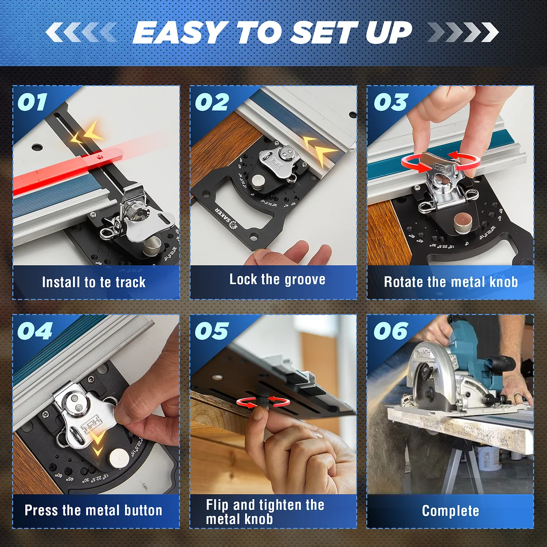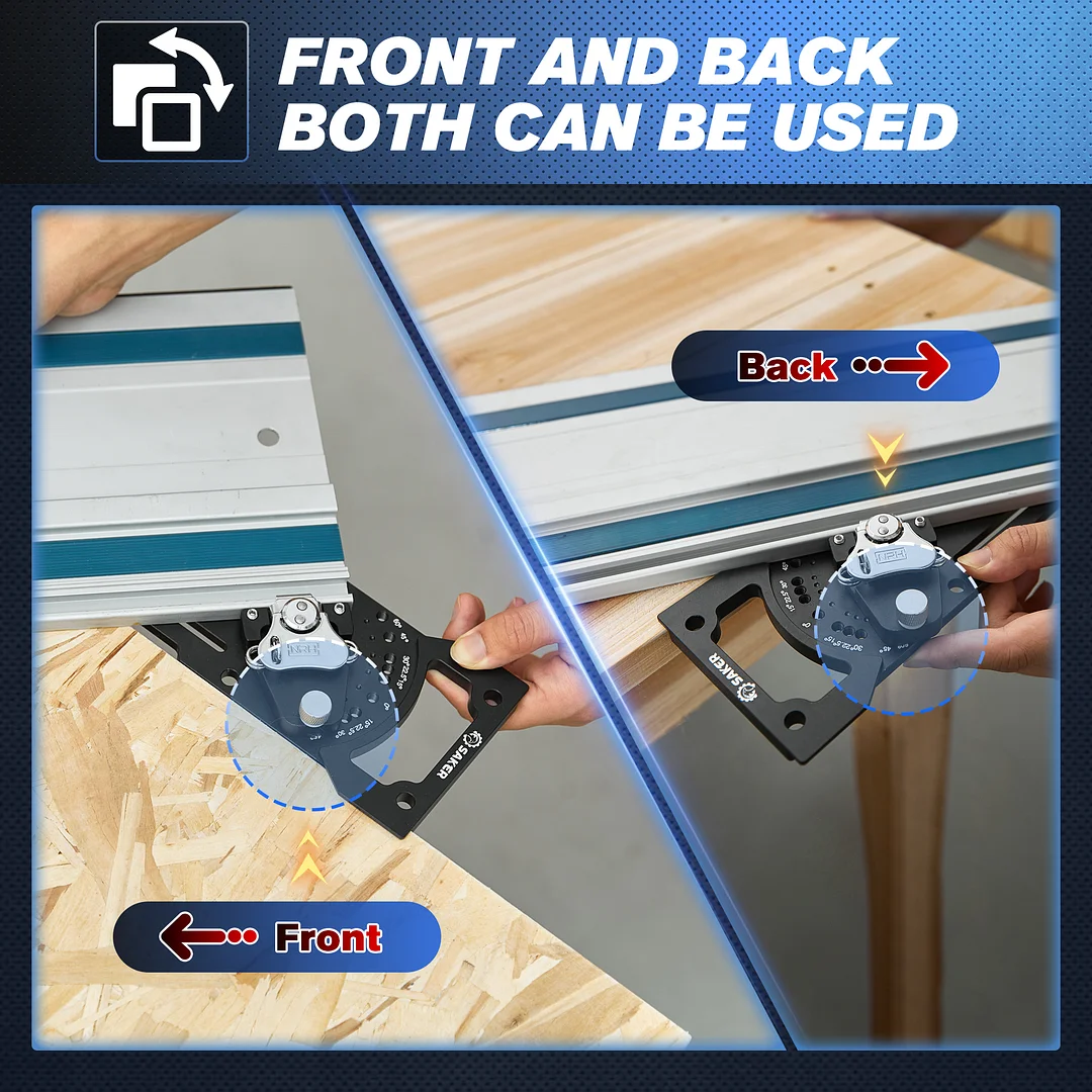 Quick Setup and User-Friendly Design: Easily install this track saw guide rail square in seconds—no marking lines needed for cuts. Its intuitive design allows front or rear rail mounting, saving time on square and angled projects (-60° to 60°), making it a go-to saw guide for efficient DIY and professional use.