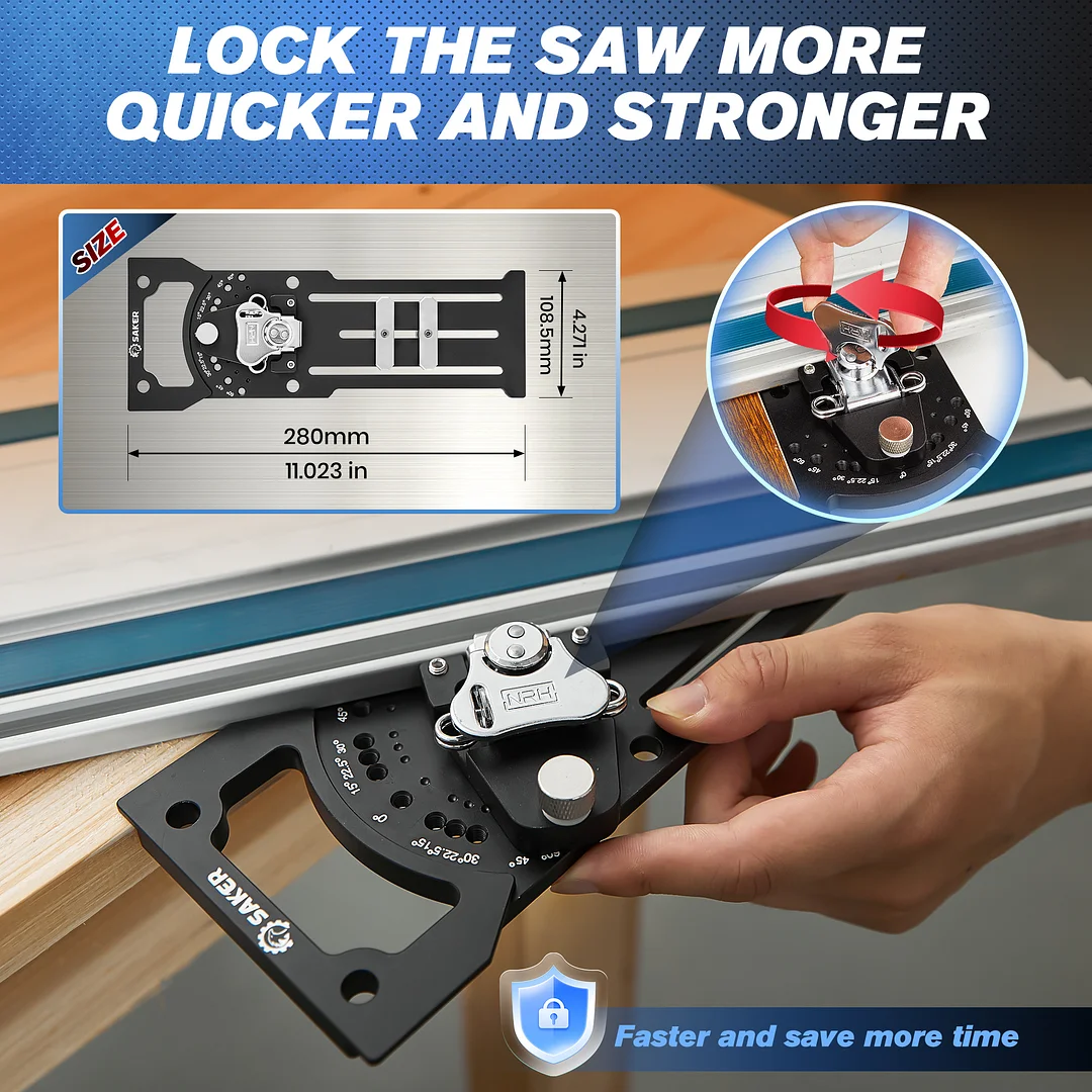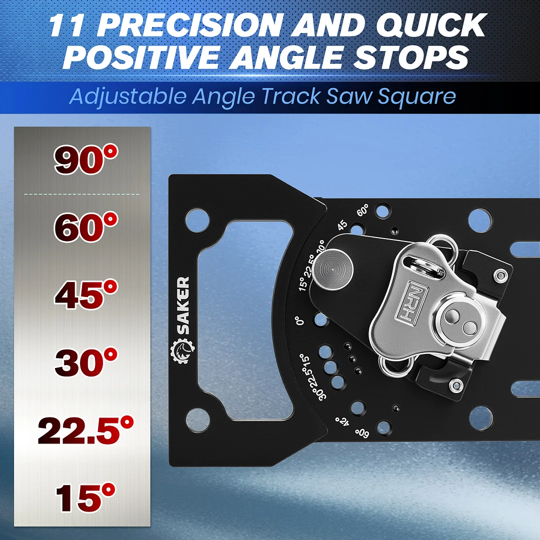 Precise Multi-Angle Cutting System: This track saw square features 11 positive angle stops (including 60°, 45°, 30°, 22.5°, 15°, 90°, and negative angles) for accurate miter cuts, transforming your circular saw into a versatile wood working tool. CNC-machined for exact 90-degree setups, it ensures clean cuts as a reliable saw guide for circular saw operations.