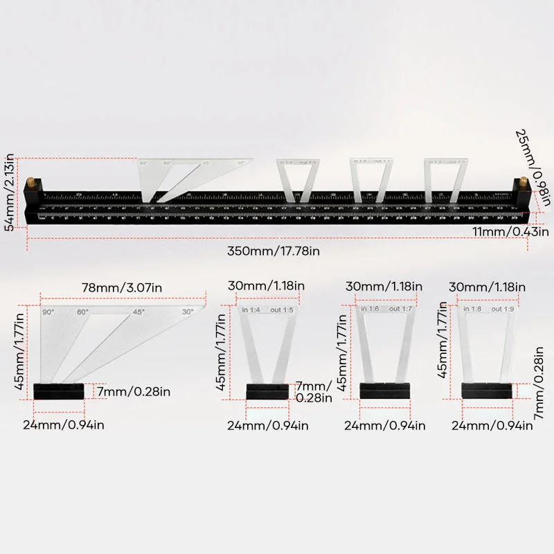 Innovative Design for Efficiency: Equipped with a long ruler, end stops, and angle components, making marking effortless and boosting productivity.