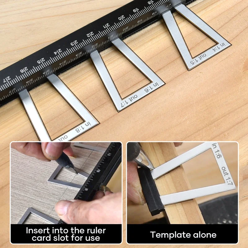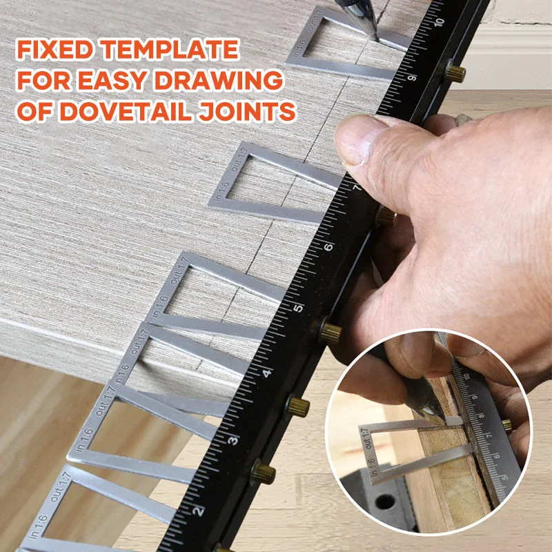 Multiple Dovetail Templates: Features six ratios (1:4 to 1:9), perfect for precise board splicing and corner connections across different types of wood.