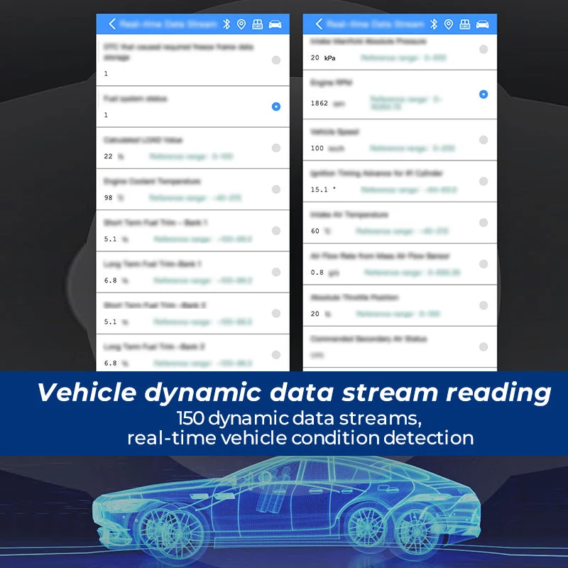 Bluetooth-powered monitoring: Stream real-time engine, transmission, and ABS diagnostics directly to your phone via seamless Bluetooth. Spot faults instantly with live error codes and alerts—no cables, no clutter. Keep your dash clean and your drives safer, whether on highways or backroads.