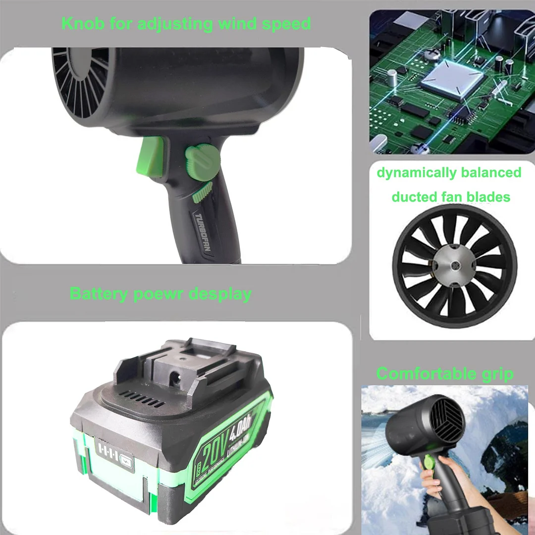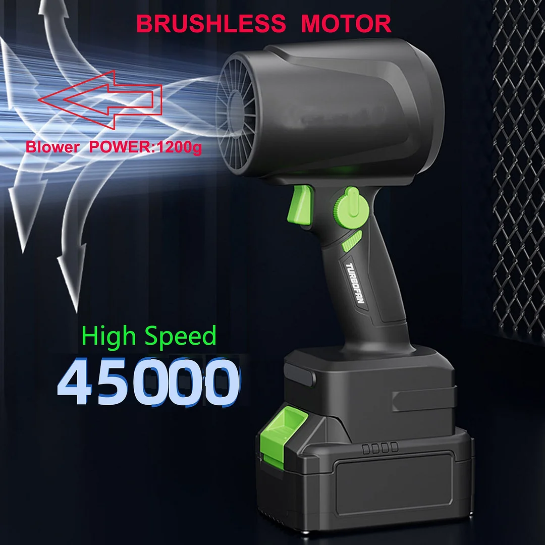 Powerful Brushless Motor: Equipped with a blowing power of 1200g and a maximum speed of 45,000 RPM, delivering exceptional wind force and significantly enhancing efficiency.
