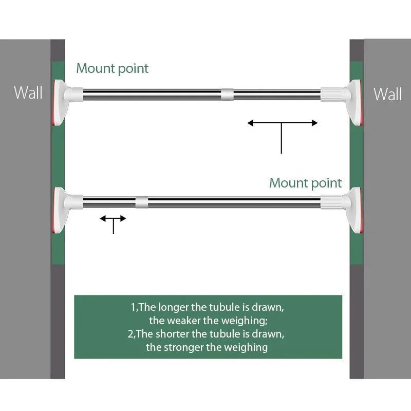 EASY TO INSTALL Tension Rod Is Simple To Extend, Pull And Twist, No Tools, No Drilling, No Damage; The Non-slip Rubber Heads In Both Ends Of The Rod Increase The Friction, Convenience For Your Use.