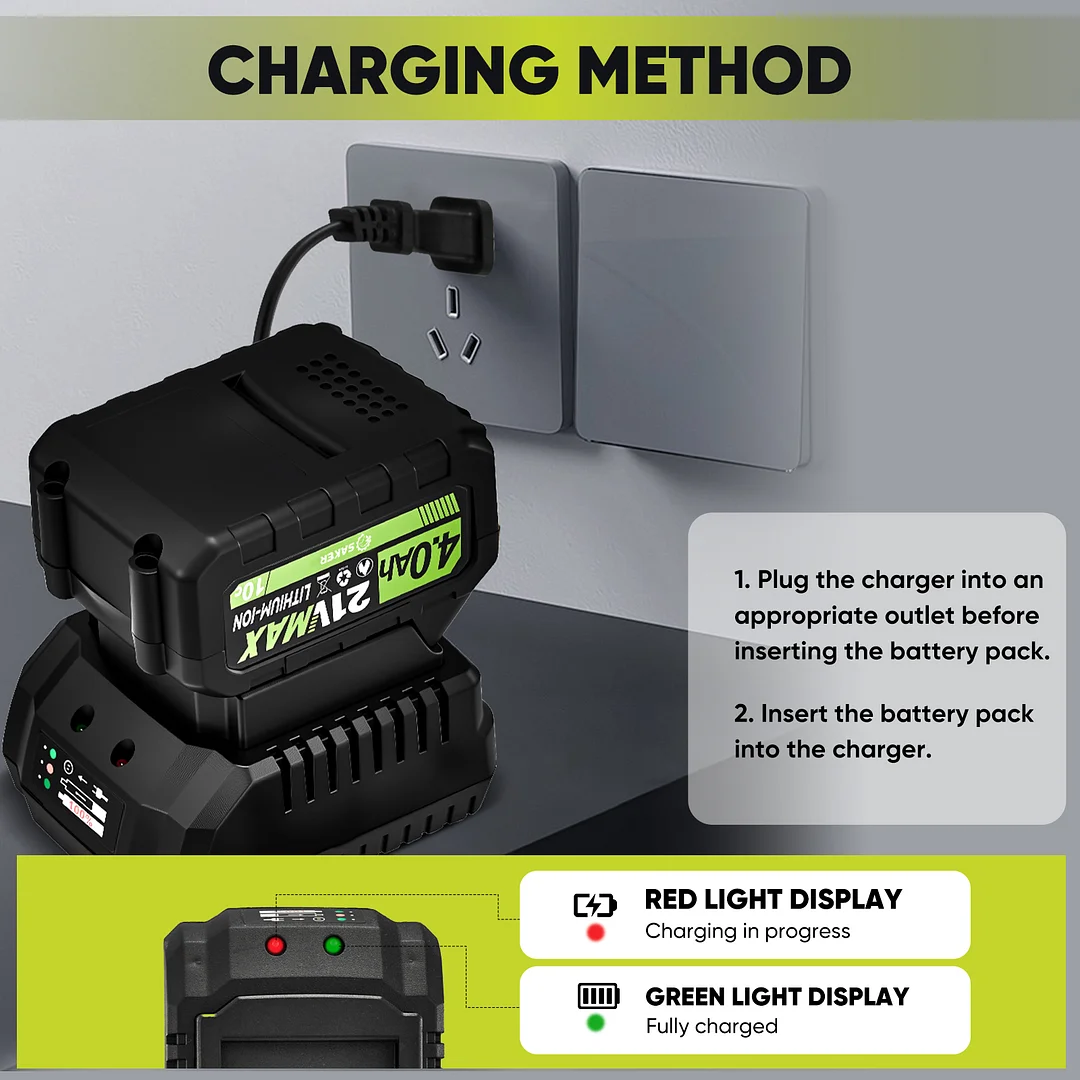 Complete Product Package: The package includes 1 leaf blower, 1 long-tube accessory, 1 flat-nozzle accessory, 2 x 21V 4000mAh batteries, 1 charger, 1 pair of earplugs, and 1 instruction manual. Everything you need for a great cleaning experience is provided.