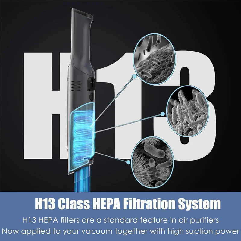 Hepa: With a focus on filtration, we have optimized the airflow structure to accompany the powerful suction. Our vacuum is equipped with an H13 HEPA filter, ensuring both exceptional suction performance and high-level filtration for cleaner air and better respiratory health.