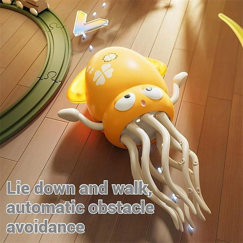 3-in-1 play modes: Features three fun ways to play — a dancing squid with lights and music, a sensing crawling mode that avoids obstacles, and an interactive fishing rod game for imaginative play.