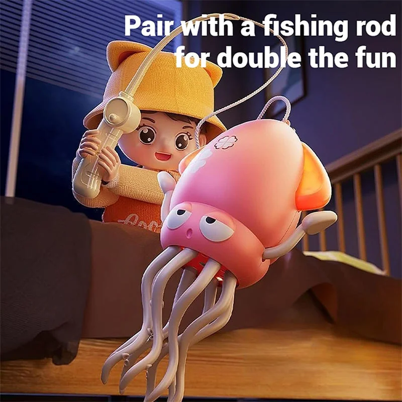 Safety materials: This baby octopus toy has been tested by a CPSC-approved laboratory to meet ASTM F963-23 and CPSIA standards. It is made of non-toxic, thick plastic, ensuring it is safe for babies to play with. (In the box: 1 x Squid Toy, 1 x Fishing Rod, 1 x Type-C Charging Cable.)