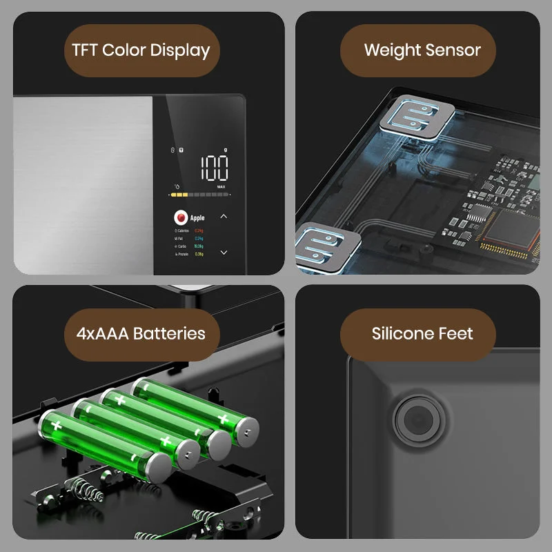 Accurate weighing: Equipped with 4 high-precision sensors, the scale can weigh your foods between 3 g - 5000 g in 1 g increment.
