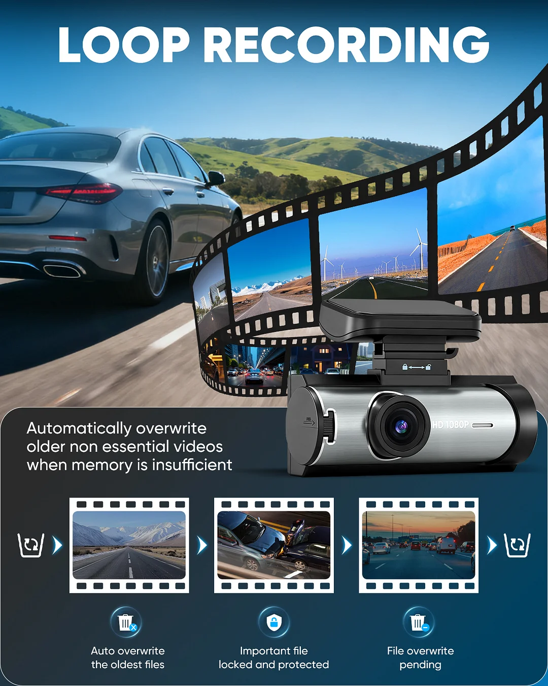 Enhanced safety features: The built-in G-sensor automatically locks footage in the event of a collision; loop recording ensures continuous recording without manual intervention. It provides added security for fleet vehicles, teen drivers, and long road trips by preserving critical video evidence of accidents or impacts.
