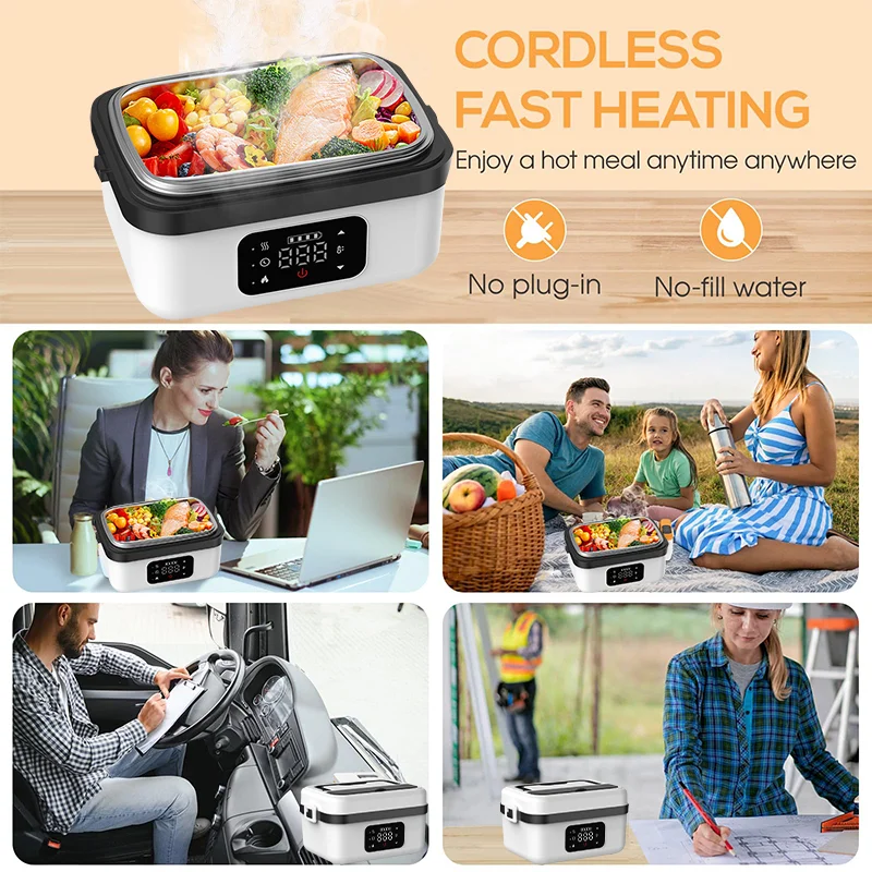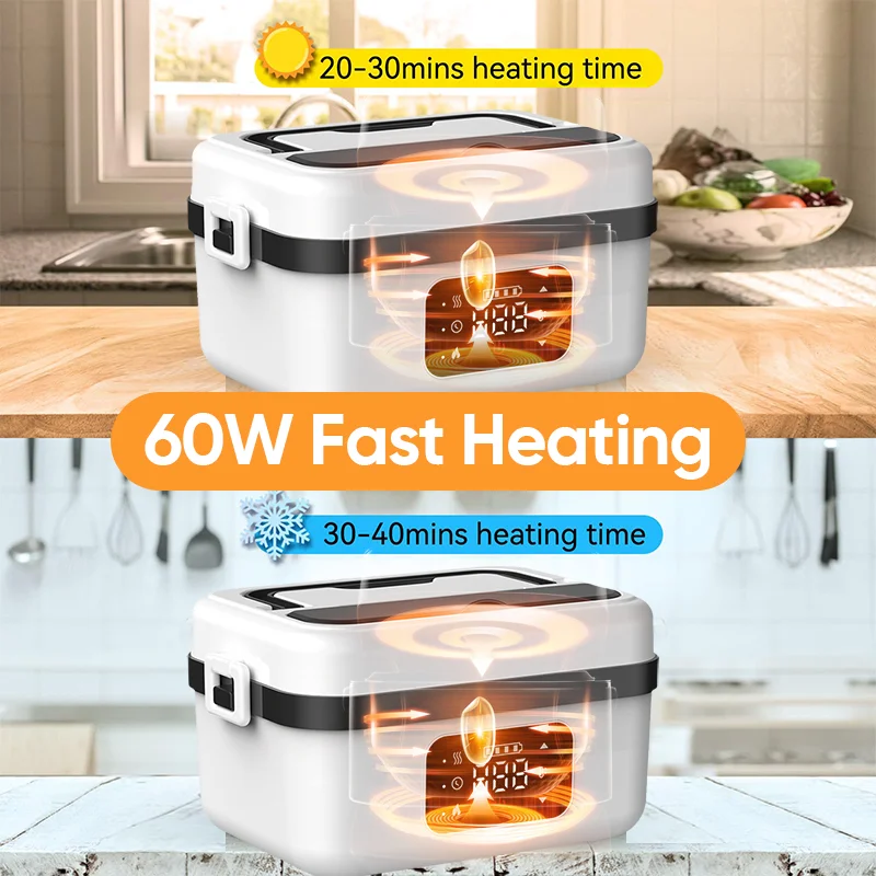 60W rapid heating: Engineered for efficiency, the self heating lunch box heats your food quickly and evenly with its 60W power, reducing heating time to just 20-30 minutes. Enjoy hot, delicious meals without the long wait.