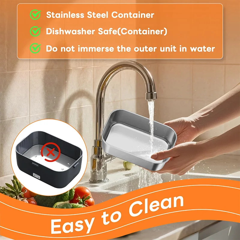 Leakproof & dishwasher-safe: Electric lunch box features a sealing gasket to prevent leaks and spills. Additionally, the stainless steel containers and PP fruit box are dishwasher-safe for added convenience. With these features, cleaning becomes effortless, making it the optimal choice for busy lifestyles.