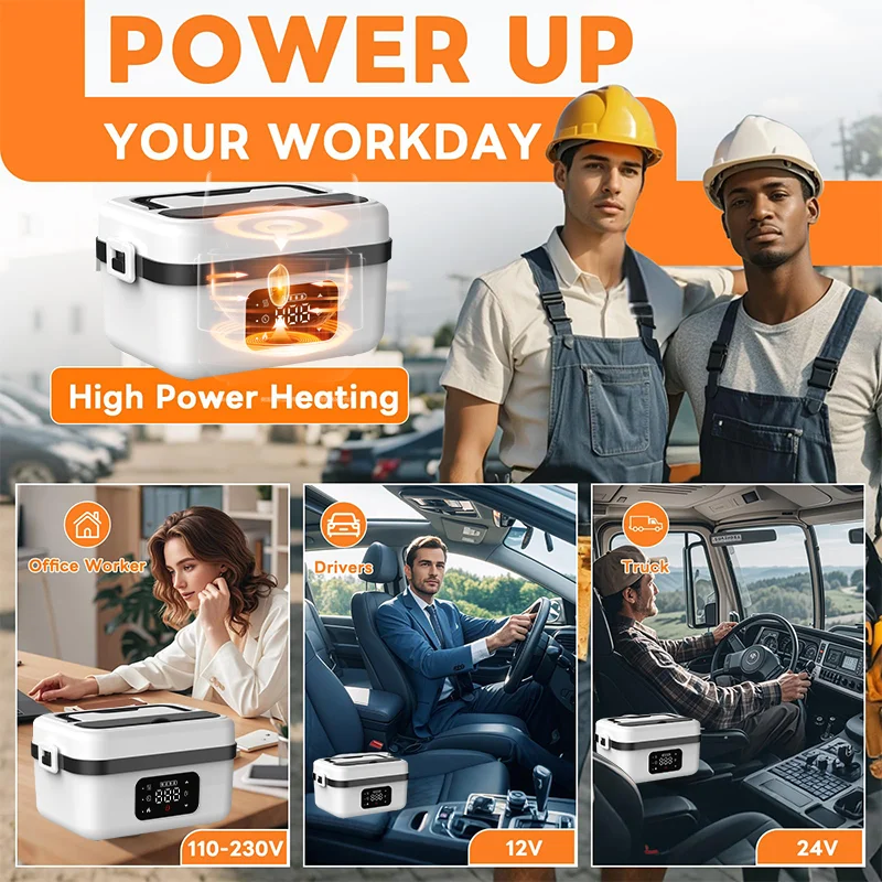 Universal voltage compatibility: This portable food warmer supports 12V, 24V, and 110V power sources, it seamlessly integrates into various life scenarios-whether you're at home, working in the office, or driving. Simply plug it in, wait for your meal to heat up, and enjoy delicious food anywhere. This makes it an ideal choice for professionals, truck drivers, and outdoor adventurers alike, ensuring warm meals just when you need them.
