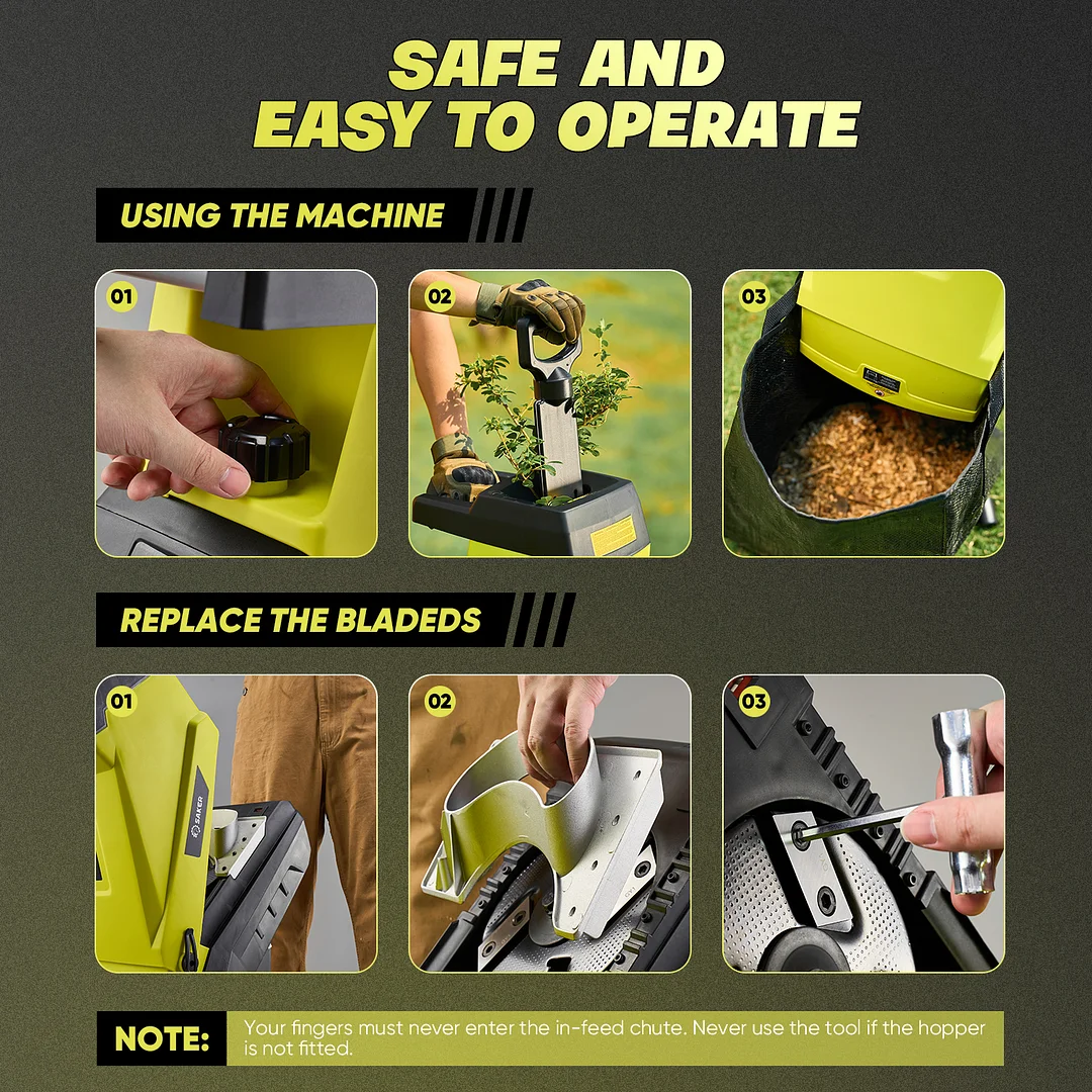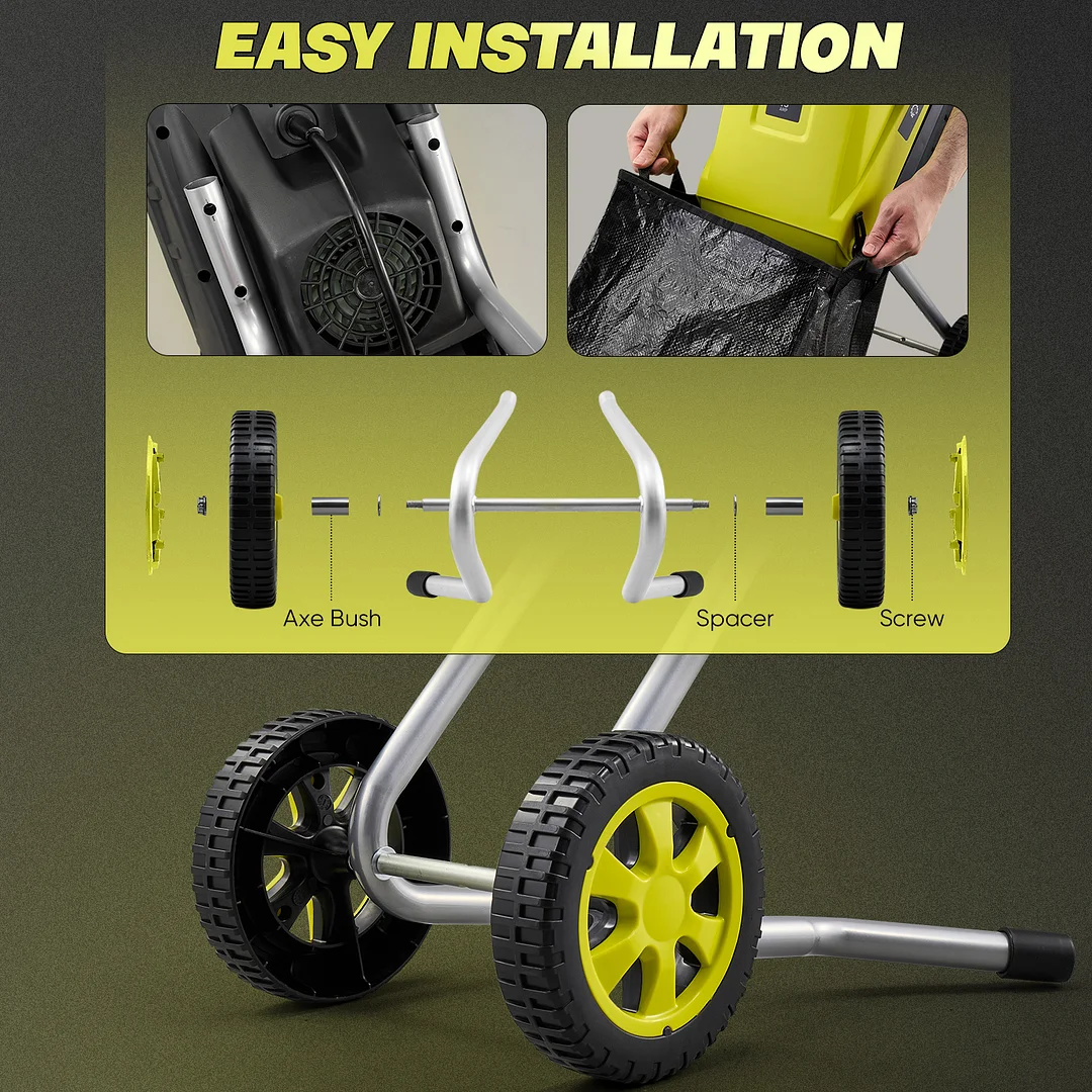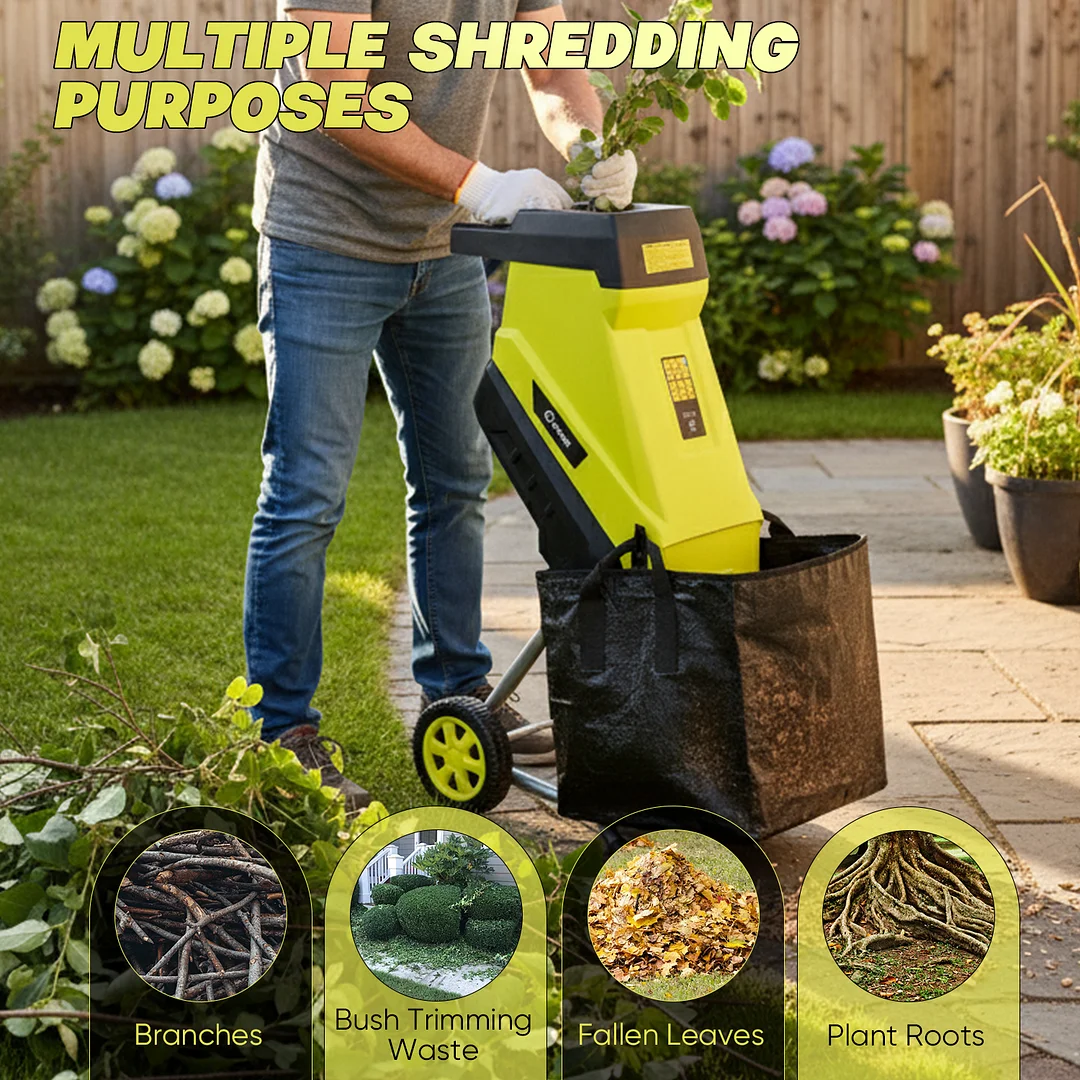 Efficient Double-Sided Blade: Durable steel blade system maximizes chipping efficiency and helps reduce large debris into fine mulch—perfect for gardens, composting, and eco-friendly cleanup.