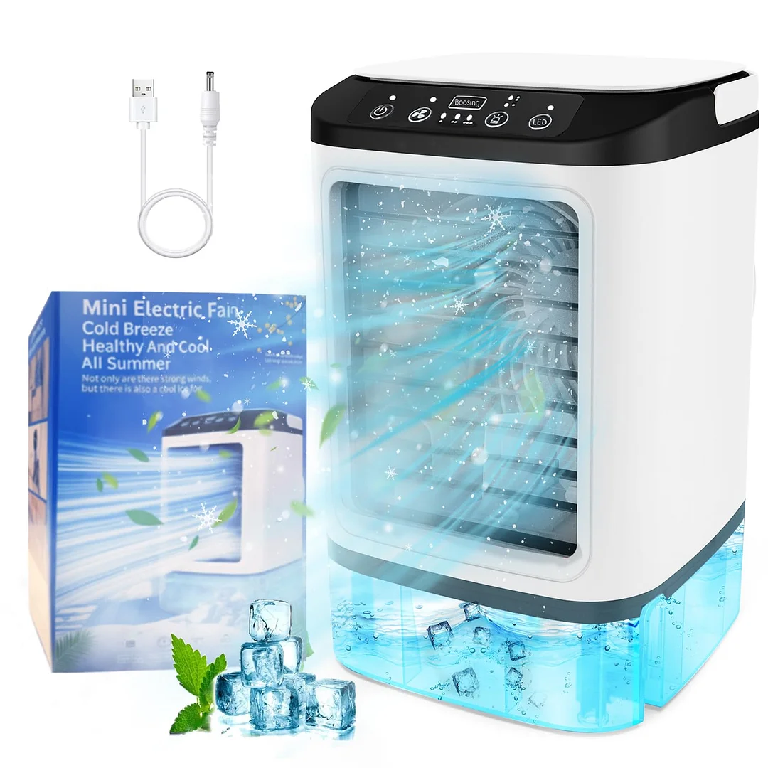 4-in-1 multi-function design – combines air conditioner, humidifier, fan, and night light in one compact unit. no filters or drainage tubes needed—just add water and enjoy cool air with 7-color ambient lighting. ideal for bedrooms, offices, camping, and more.