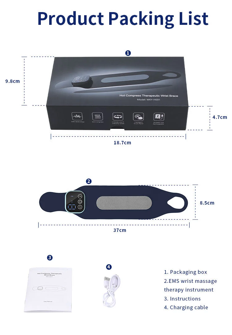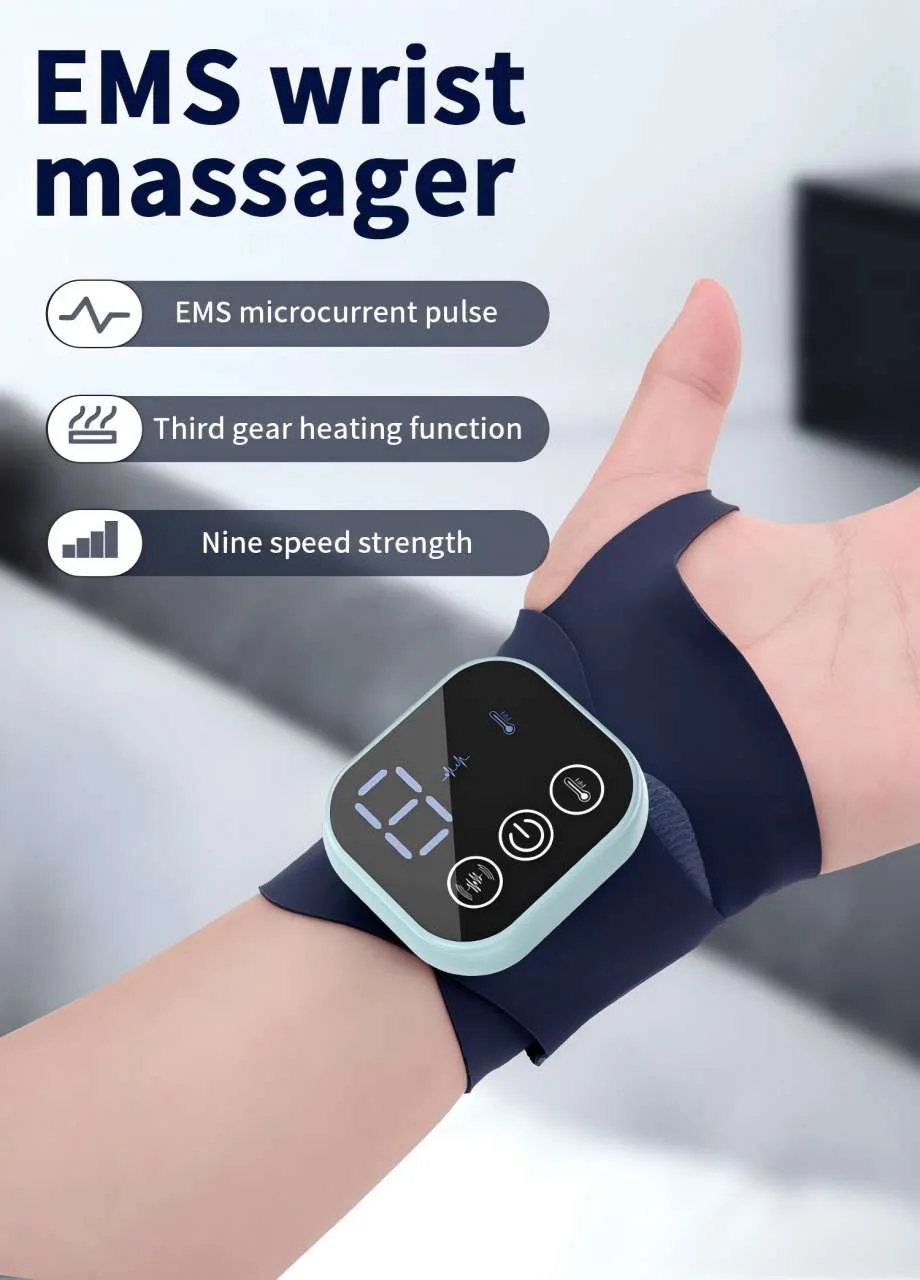 Advanced EMS and vibration therapy for pain relief: Equipped with EMS (Electrical Muscle Stimulation) and vibration functions, this smart wrist massager effectively targets wrist pain and conditions like tenosynovitis, offering deep muscle stimulation and promoting circulation for quicker recovery.