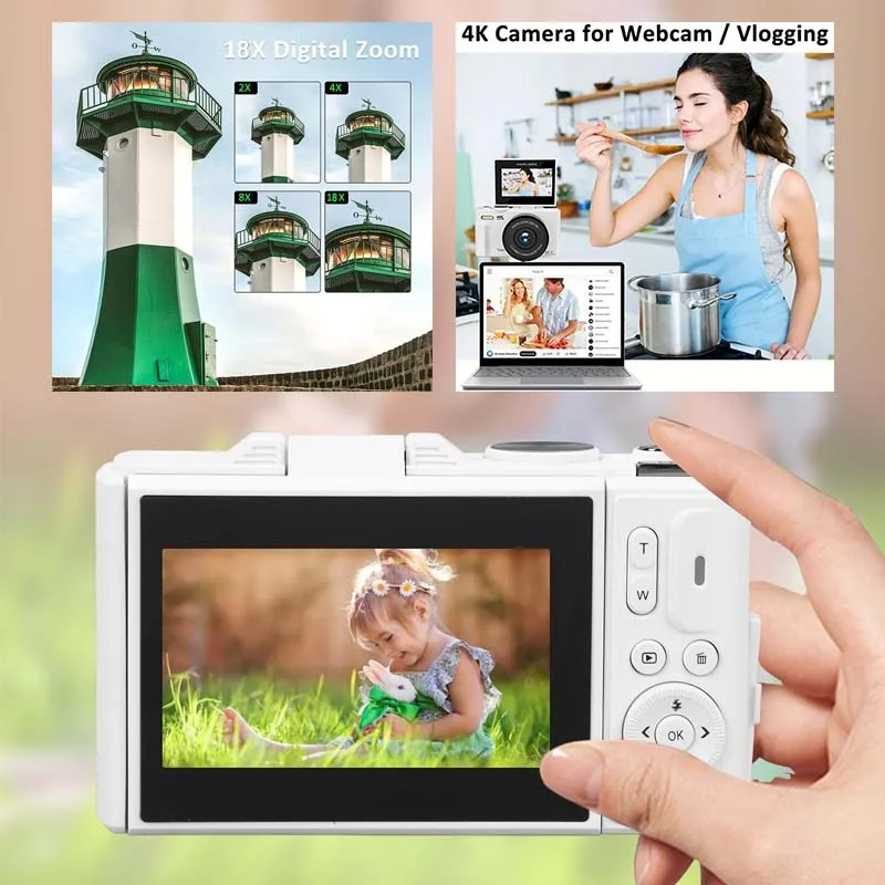 18x digital zoom: Get closer to your subject with the powerful 18x zoom lens, ensuring crisp and clear images from a distance.