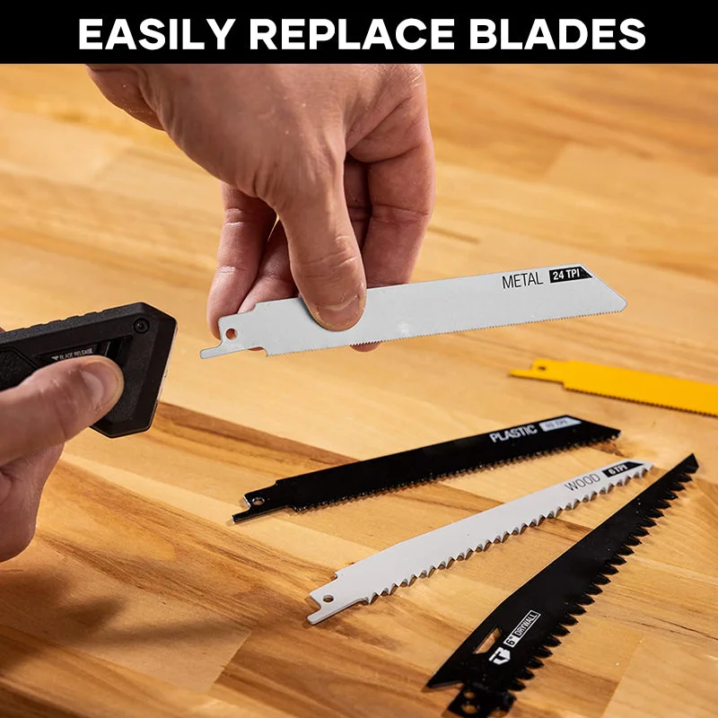 Tool-Less Blade Replacement: Equipped with a blade release mechanism, the saw allows for quick and hassle-free blade changes without the need for tools.