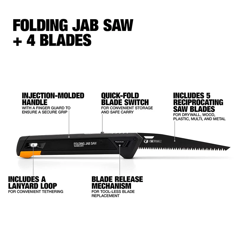 Quick-Fold and Portable Design: The folding jab saw features a quick-fold mechanism and compact size, making it easy to store and carry wherever you need it.