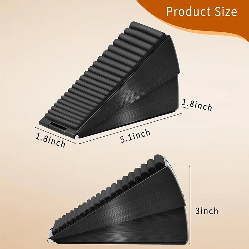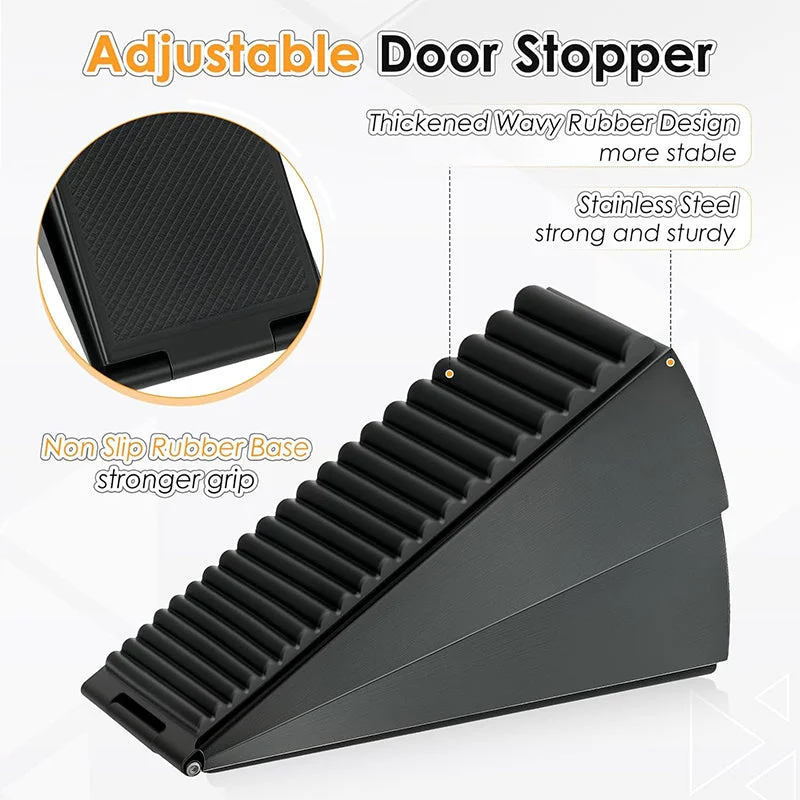 Anti-slip design: The large heavy duty door stop has an innovative in-built strong spring design, that is placed under the door to create tension, doorstop along with non-slip rubber on the top and bottom to hold it securely between your floor and the door.